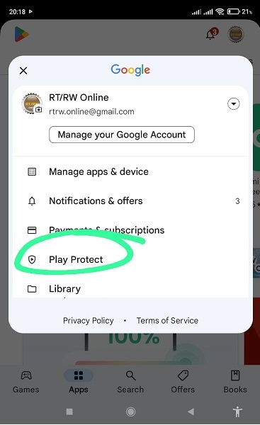 2. Klik pada pilihan Play Protect ( perhatikan gambar diatas ) .